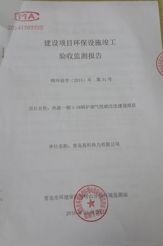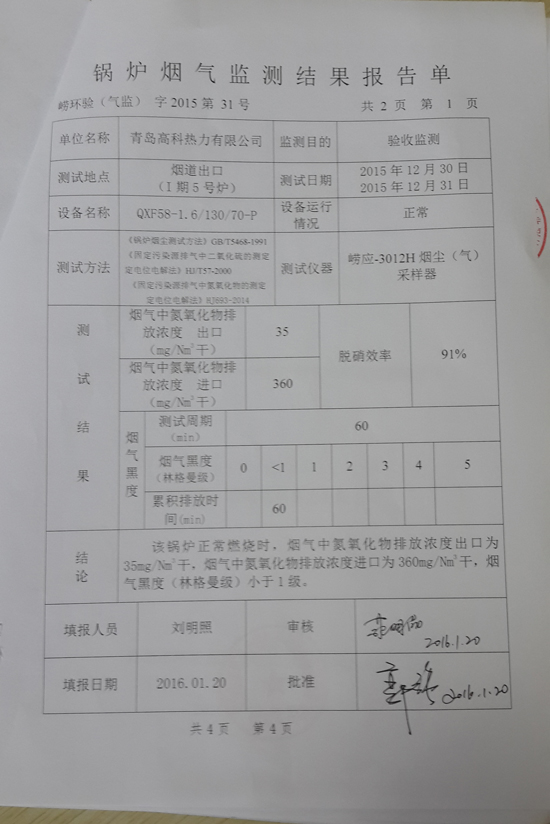 熱源一期3-5#煙氣脫硝項目驗收監(jiān)測報告